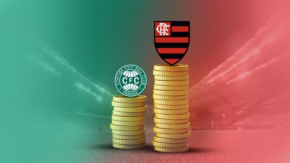 O Flamengo tem um custo somente com o futebol profissional de R$ 16,6 milhões mensais, enquanto o Coritiba gasta R$ 2 milhões por mês.
