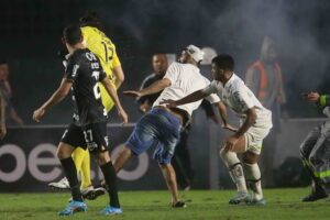 Sinalizadores foram lançados ao gramado antes da agressão e o jogo acabou sendo interrompido e logo após finalizado. No campo, apesar da vitória do Santos por 1×0, o time acabou sendo eliminado devido à derrota por 4×0 no jogo de ida.