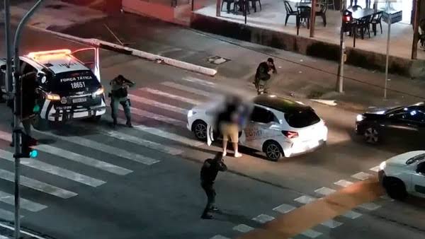 Ainda segundo a PM, durante uma vistoria nas proximidades do evento, os agentes visualizaram um veículo Fiat Siena, de cor preta, estacionado em um matagal. Ao se aproximarem do veículo, os policiais avistaram a mulher gritando e tentando se desvencilhar do suspeito.