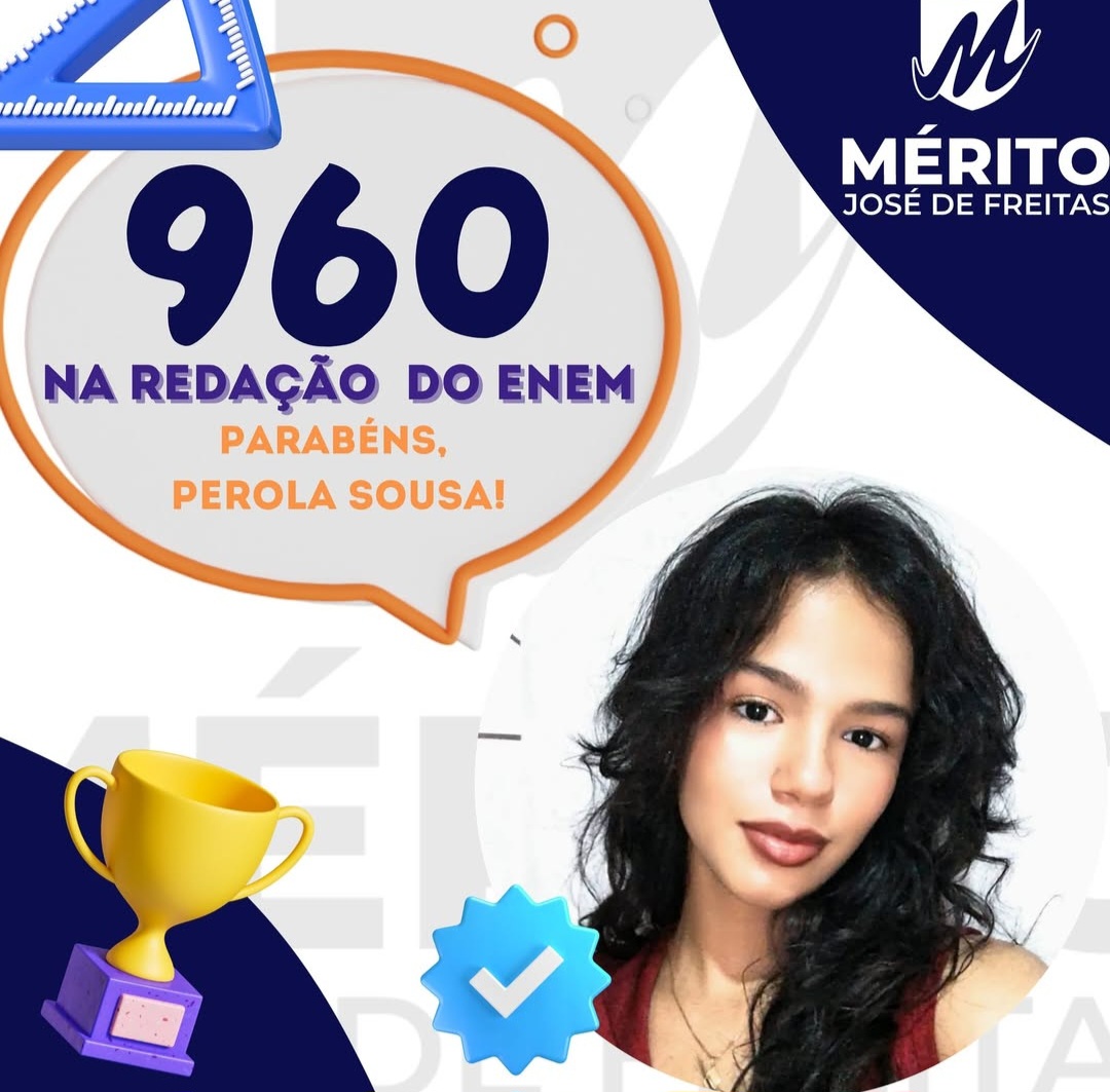 A estudante Pérola Sousa, do Colégio Mérito, em José de Freitas, conquistou um resultado de grande destaque no Exame Nacional do Ensino Médio (ENEM), ao alcançar 960 pontos na redação, uma das notas mais altas da avaliação.