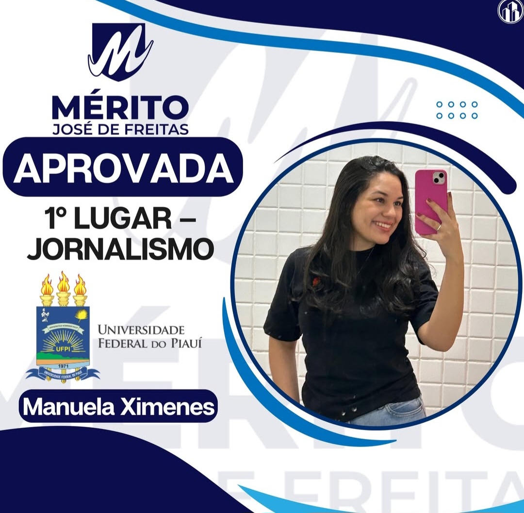 A jovem Manuela Ximenes, aluna do Colégio Mérito de José de Freitas, conquistou o 1º lugar no curso de Jornalismo da Universidade Federal do Piauí (UFPI), uma das instituições de ensino superior mais renomadas do estado.
