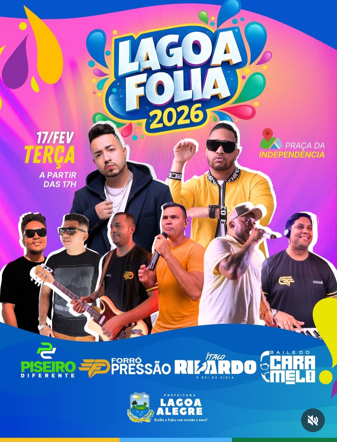 O evento é uma realização da Prefeitura de Lagoa Alegre, que reforça o compromisso de promover cultura, lazer e momentos de confraternização para a população e visitantes, consolidando o Lagoa Folia como uma das festas mais aguardadas do calendário carnavalesco da região.