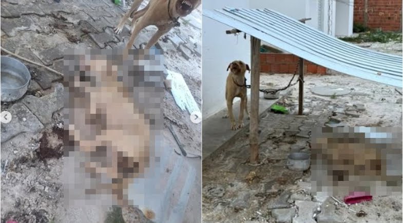 A perícia criminal da Polícia Civil esteve na residência para apurar as circunstâncias da morte do cão. O animal sobrevivente foi encaminhado por voluntários a um abrigo.
