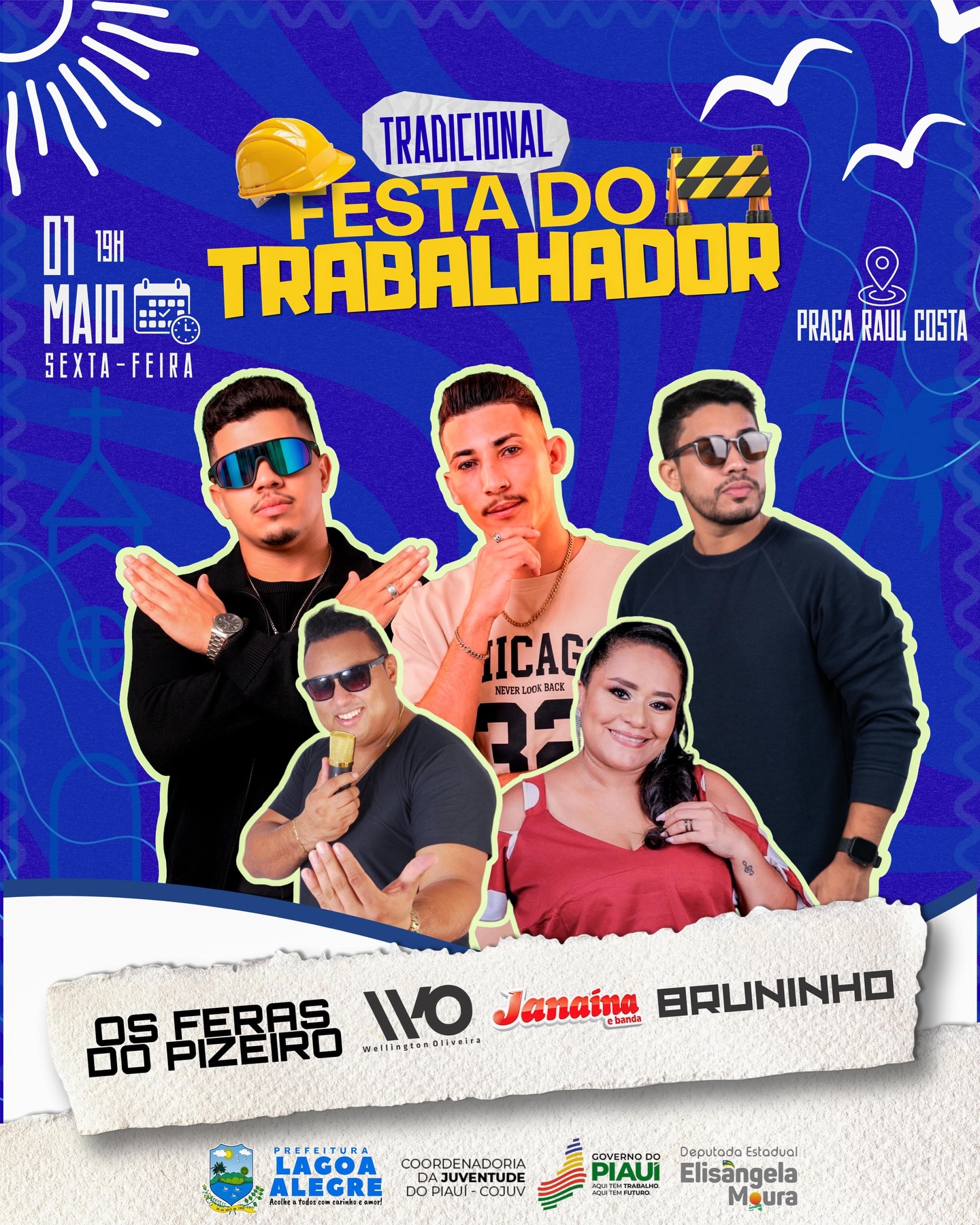 A Festa do Trabalhador já é uma tradição no município e tem como objetivo celebrar a data com momentos de lazer e confraternização para a população. A expectativa é de grande público no evento promovido pela Prefeitura de Lagoa Alegre.