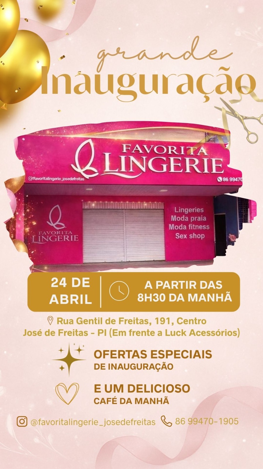 Para mais informações, os interessados podem acompanhar o perfil oficial da loja no Instagram: @favoritalingerie_josedefreitas ou entrar em contato pelo telefone (86) 99470-1905.