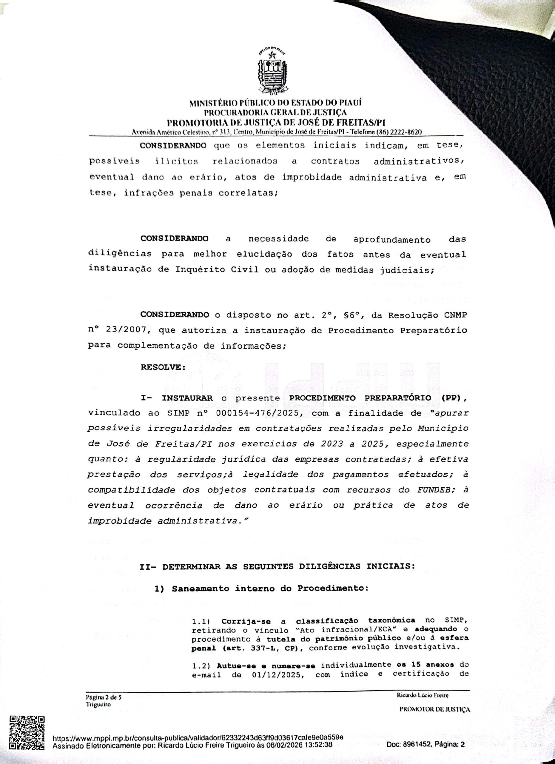 Ministério Público do Piauí investiga suspeita de “empresas fantasma” em José de Freitas